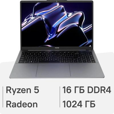 Ноутбук TECNO MegaBook K16SDA 16", 2024, IPS, AMD Ryzen 5 7430U 2.3ГГц, 6-ядерный, 16ГБ DDR4, 1ТБ SSD, AMD Radeon Graphics, Windows 11 Home, серый [71005000262]