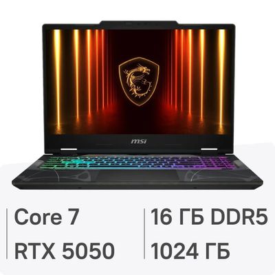 Ноутбук игровой MSI Cyborg 15 B2RWEKG-235XRU 15.6", 2025, IPS, Intel Core 7 240H 2.5ГГц, 10-ядерный, 16ГБ DDR5, 1ТБ SSD, NVIDIA GeForce RTX 5050 для ноутбуков - 8 ГБ, FreeDOS, черный [9s7-15q342-235]