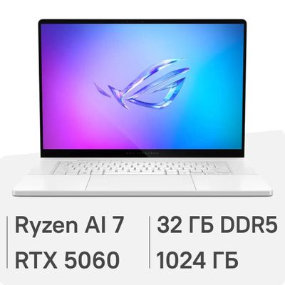 Ноутбук игровой ASUS ROG Zephyrus G16 GA605KM-QR036 16", 2025, OLED, AMD Ryzen AI 7 350 2ГГц, 8-ядерный, 32ГБ LPDDR5x, 1ТБ SSD, NVIDIA GeForce RTX 5060 для ноутбуков - 8 ГБ, без операционной системы, белый [90nr0ne2-m00250]