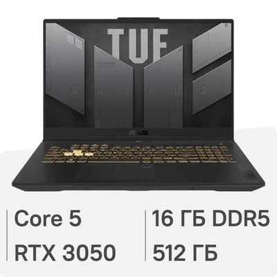 Ноутбук игровой ASUS TUF Gaming F17 FX707VJB-HX100 17.3", IPS, Intel Core 5 210H 2.2ГГц, 8-ядерный, 16ГБ DDR5, 512ГБ SSD, NVIDIA GeForce RTX 3050 для ноутбуков - 6 ГБ, без операционной системы, серый [90nr0my5-m003r0]