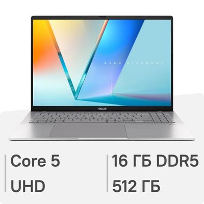 Ноутбук ASUS VivoBook S16 S3607VA-RP105 16", IPS, Intel Core 5 210H 2.2ГГц, 8-ядерный, 16ГБ DDR5, 512ГБ SSD, Intel UHD Graphics, без операционной системы, серебристый [90nb1671-m007r0]
