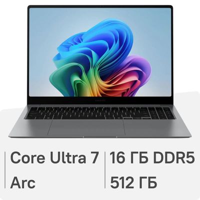 Ноутбук Samsung Galaxy Book 5 Pro NP960 16", 2025, AMOLED, Intel Core Ultra 7 256V 2.2ГГц, 8-ядерный, 16ГБ LPDDR5x, 512ГБ SSD, Intel Arc 140V, Windows 11 Home, серый [np960xha-lg1in]