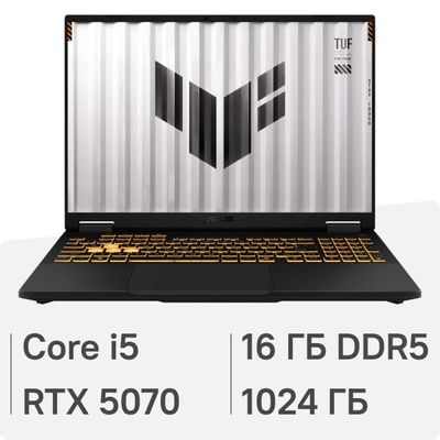 Ноутбук игровой ASUS TUF Gaming F16 FX608JPR-RV098 16", 2025, IPS, Intel Core i5 14450HX 2.4ГГц, 10-ядерный, 16ГБ DDR5, 1ТБ SSD, NVIDIA GeForce RTX 5070 для ноутбуков - 8 ГБ, без операционной системы, серый [90nr0ng1-m006n0]