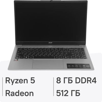 Ноутбук Acer Aspire Lite AL15-42P-R05S 15.6", IPS, AMD Ryzen 5 7430U 2.3ГГц, 6-ядерный, 8ГБ DDR4, 512ГБ SSD, AMD Radeon Graphics, без операционной системы, серебристый [nx.d32cd.001]