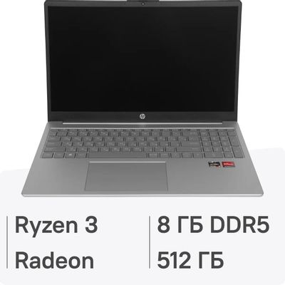 Ноутбук HP 15-fc0165nia 15.6", IPS, AMD Ryzen 3 7320U 2.4ГГц, 4-ядерный, 8ГБ LPDDR5, 512ГБ SSD, AMD Radeon 610M, FreeDOS, серебристый [ba5k9ea]