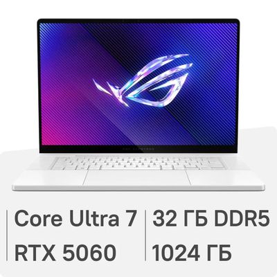 Ноутбук игровой ASUS ROG Zephyrus G16 GU605CM-QR082W 16", 2025, OLED, Intel Core Ultra 7 255H 2ГГц, 16-ядерный, 32ГБ LPDDR5x, 1ТБ SSD, NVIDIA GeForce RTX 5060 для ноутбуков - 8 ГБ, Windows 11, белый [90nr0m22-m003x0]