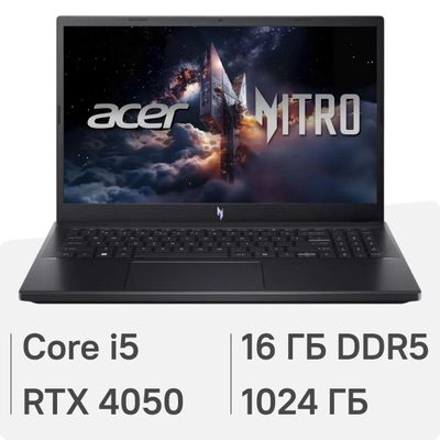 Ноутбук игровой Acer Nitro V 15 ANV15-52-54JU 15.6", IPS, Intel Core i5 13420H 2.1ГГц, 8-ядерный, 16ГБ DDR5, 1ТБ SSD, NVIDIA GeForce RTX 4050 для ноутбуков - 6 ГБ, без операционной системы, черный [nh.qv2cd.002]