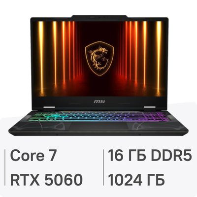 Ноутбук игровой MSI Cyborg 15 B2RWFKG-024XRU 15.6", 2025, IPS, Intel Core 7 240H 2.5ГГц, 10-ядерный, 16ГБ DDR5, 1ТБ SSD, NVIDIA GeForce RTX 5060 для ноутбуков - 8 ГБ, FreeDOS, черный [9s7-15q342-024]