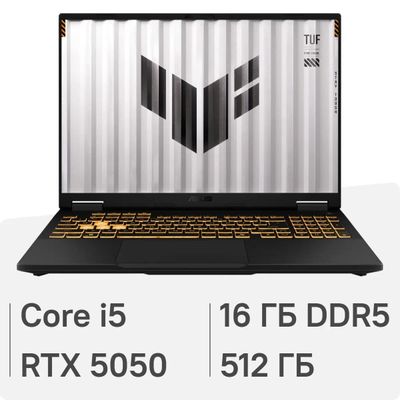 Ноутбук игровой ASUS TUF Gaming F16 FX608JHR-RV177 16", 2025, IPS, Intel Core i5 14450HX 2.4ГГц, 10-ядерный, 16ГБ DDR5, 512ГБ SSD, NVIDIA GeForce RTX 5050 для ноутбуков - 8 ГБ, без операционной системы, серый [90nr0na1-m009d0]